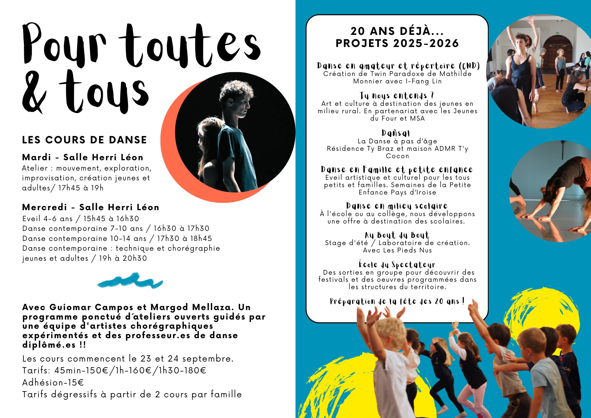 Deux décennies de danse, de création, de transmission, de partages. Avant de souffler nos bougies, nous vous invitons à vivre avec nous une saison riche en mouvements, en émotions… et en duos !